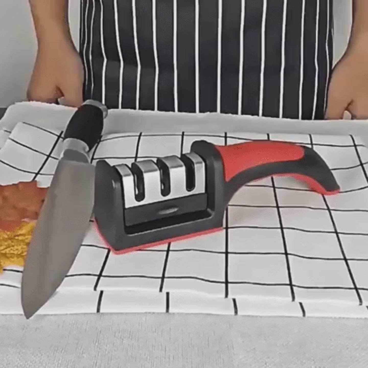 - Diseño versátil: Simplemente coloca la hoja en cada una de las ranuras y tira suavemente del cuchillo unas cuantas veces para un afilado rápido y eficaz. El mango ergonómico es fácil de manejar.