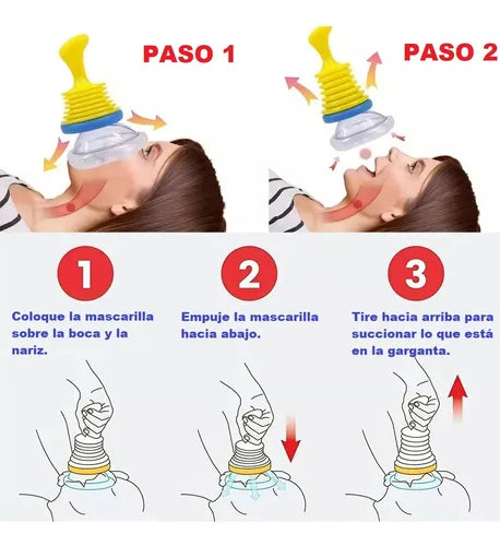 Con un sistema práctico y seguro, permite generar succión rápida y eficaz para ayudar a liberar las vías respiratorias bloqueadas. Es un complemento indispensable a la maniobra de Heimlich y una herramienta que puede marcar la diferencia en una emergencia.